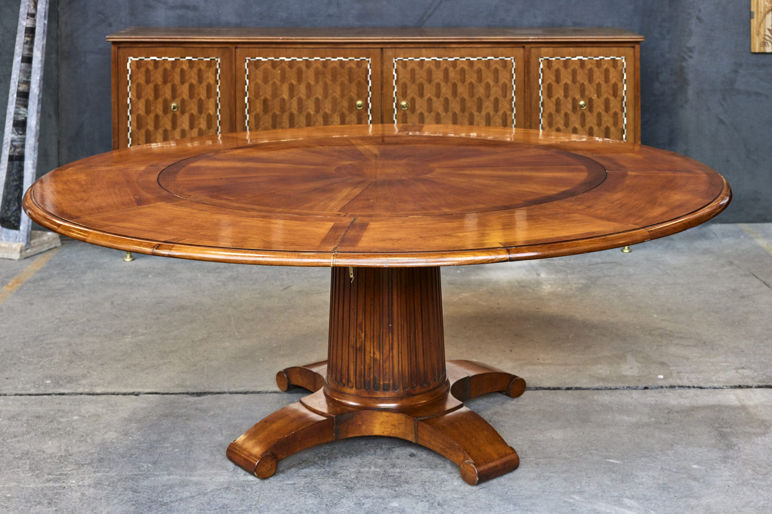 Bois plaqué et laqué, système à rallonges