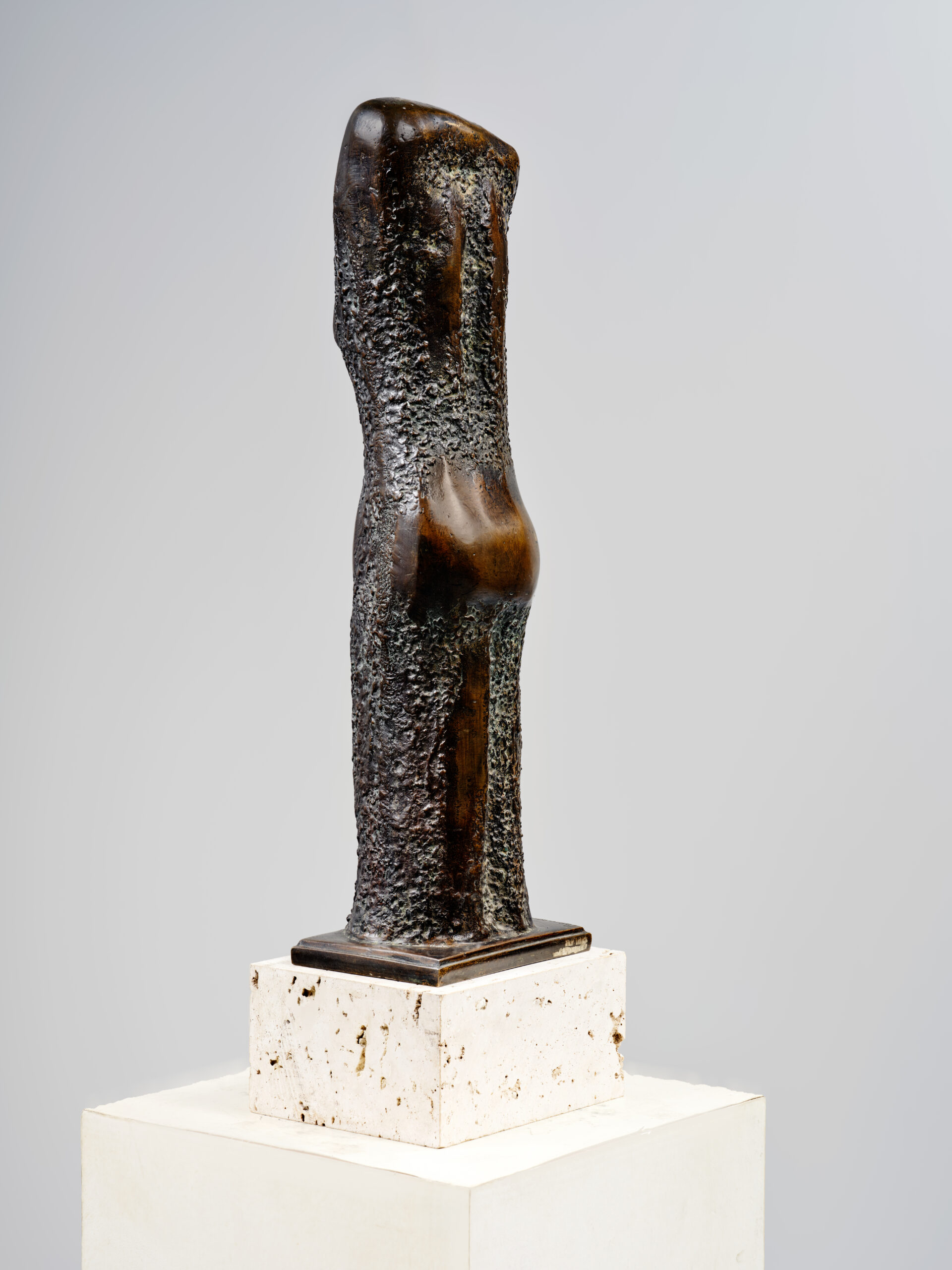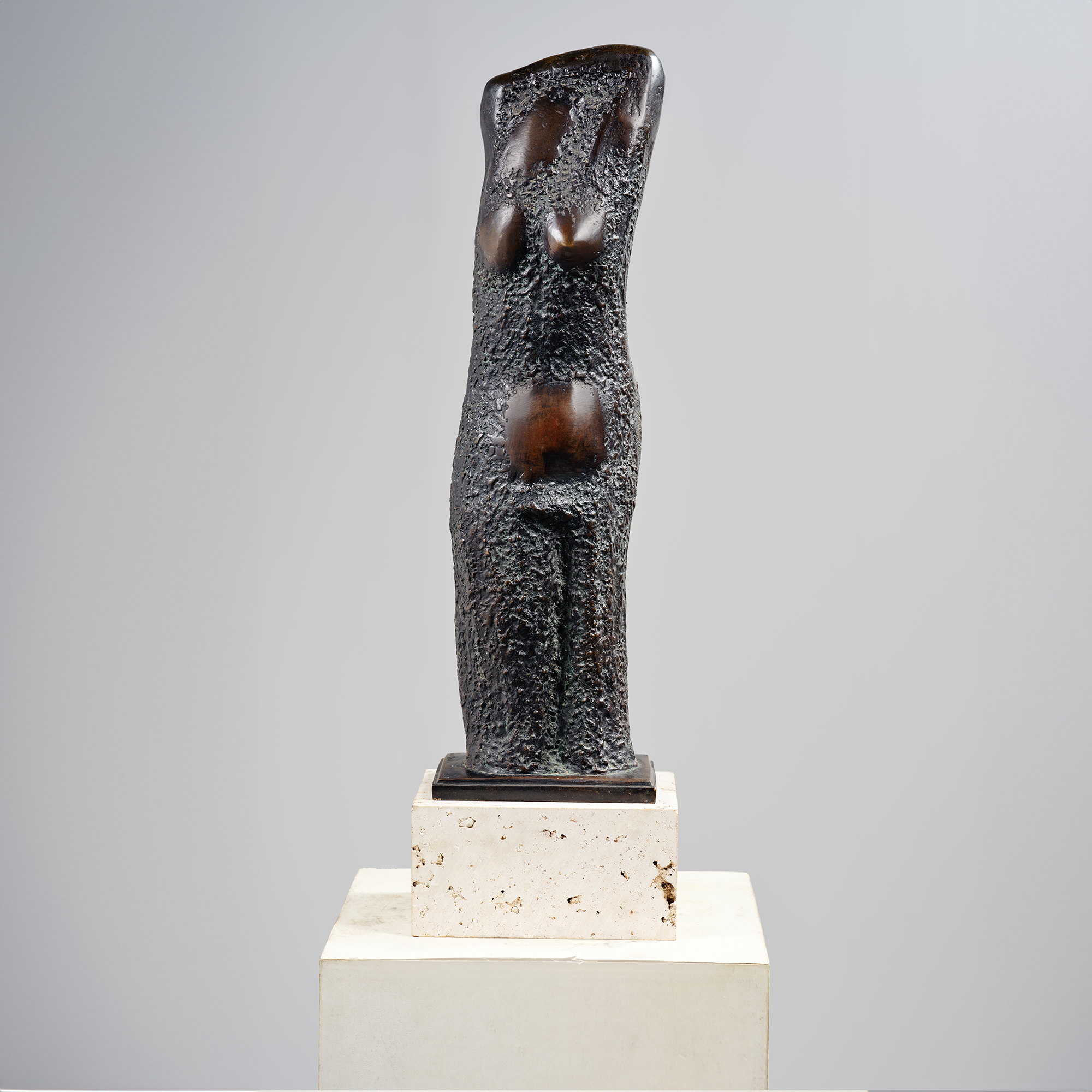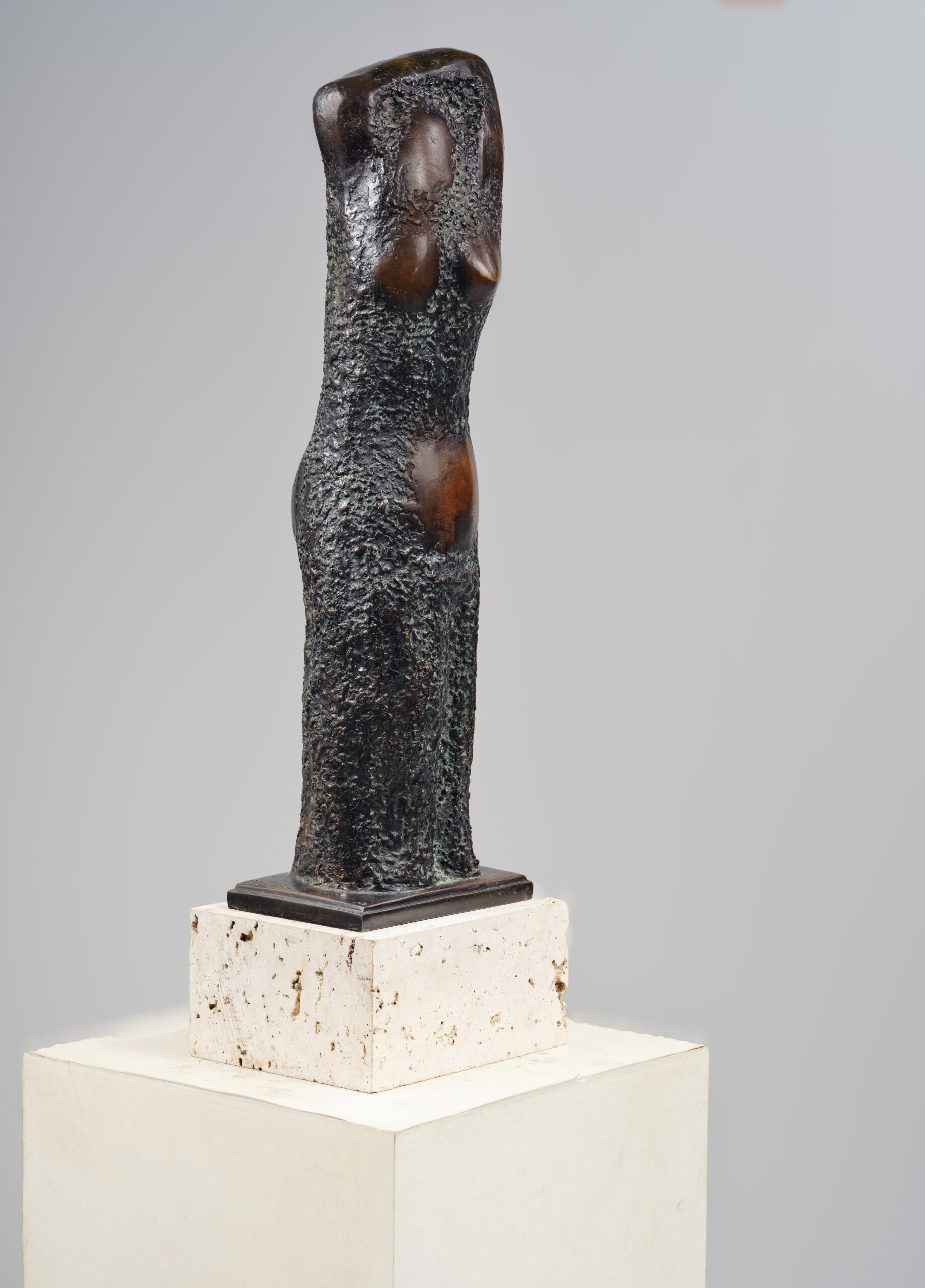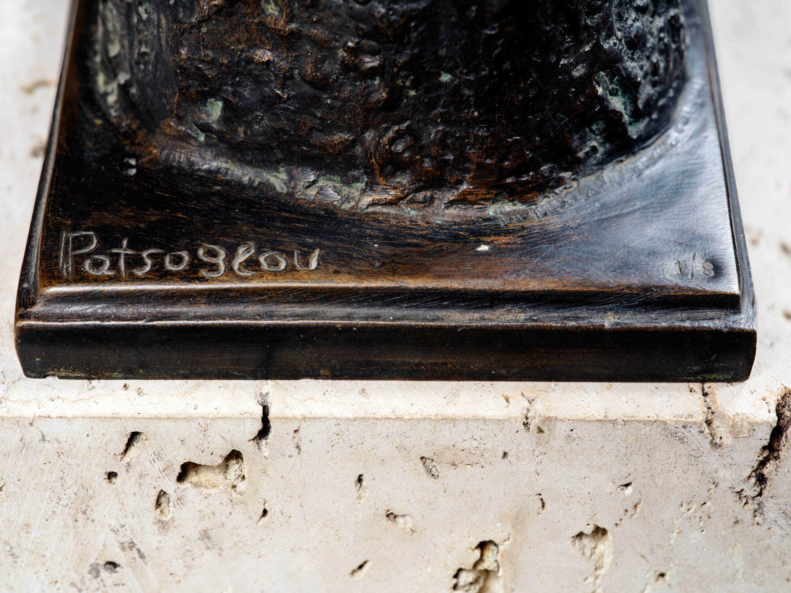 Bronze à patine brune représentant une figure féminine, exécutée dans un style expressif caractéristique de Patsoglou.