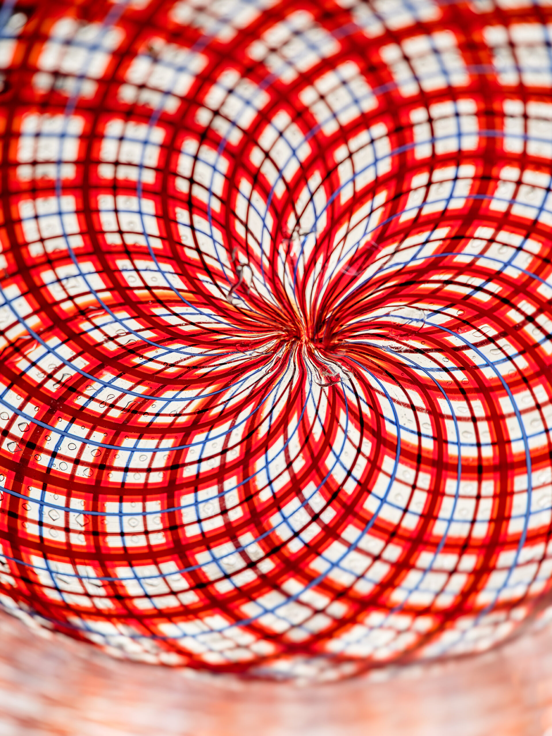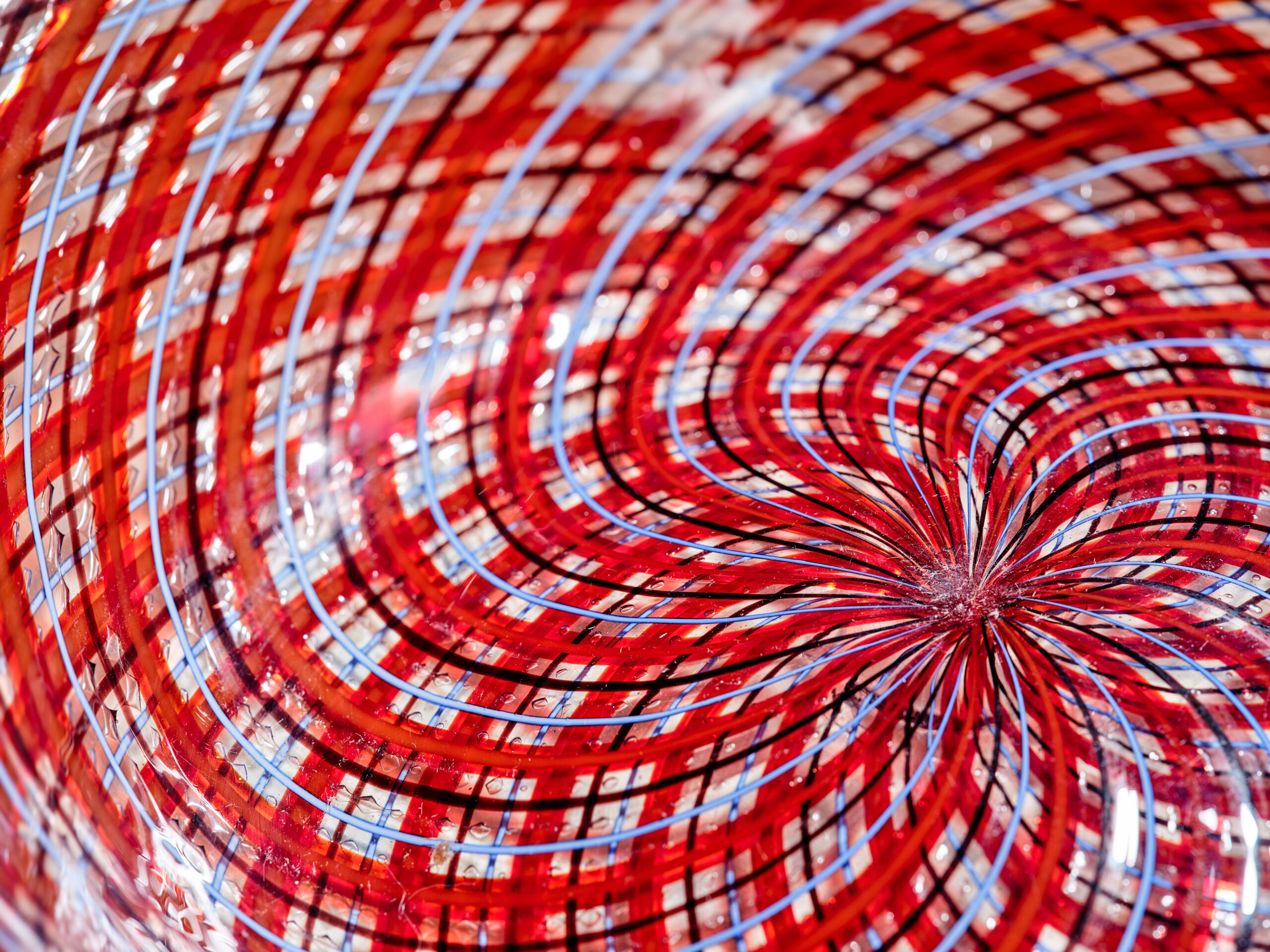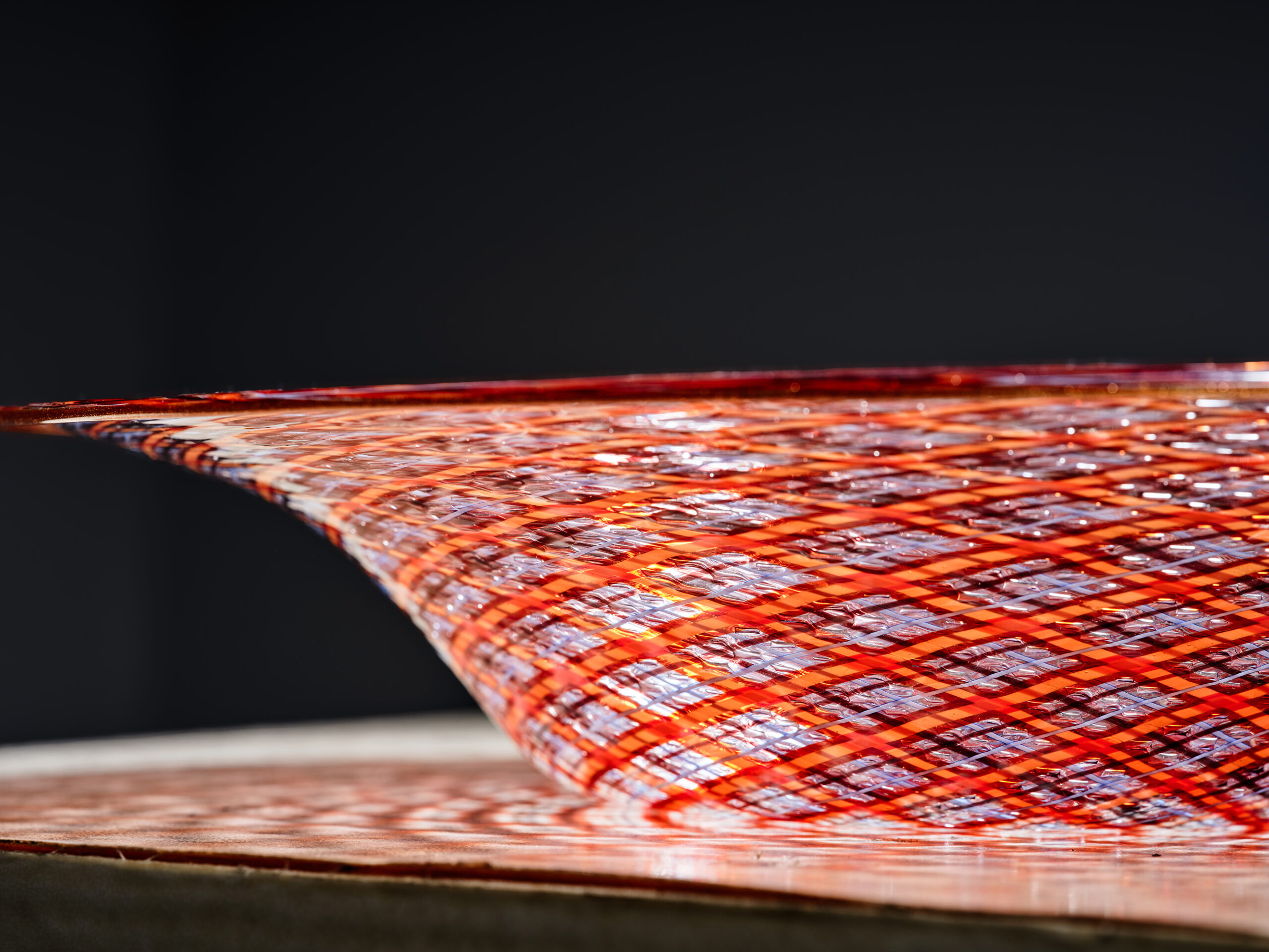 Grande coupe en verre soufflé réalisée selon la technique du reticello avec cannes de verre alternées. Exemple représentatif du savoir-faire verrier développé à Murano dans l’entre-deux-guerres.