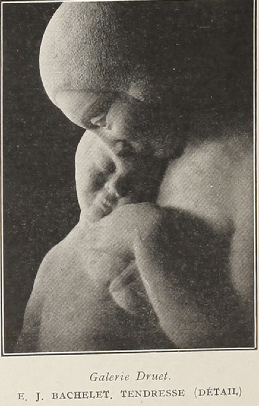 « C’est à Nancy que Bachelet reçut sa première formation, à l’époque où l’“école de Nancy” atteignait son apogée. Il vécut ses années de jeunesse et fit son apprentissage dans ce milieu artistique extraordinaire et insolite qui travaillait avec enthousiasme sous l’influence d’un Gallé, d’un Vallin, d’un Prouvé… À titre d’exemple, considérons ce groupe aux volumes doux, plein de charme et de force intitulé : Tendresse, et nous admirerons comment le sculpteur sait assouplir et nuancer un modelé par gradations délicates. Bachelet fuit le réalisme. Il sait dégager les lignes élémentaires qui inscrivent en leurs contours des plans aux transitions subtilement ménagées. Il stylise naturellement… Son art prend racine au sein de deux qualités qui ne vont pas toujours de pair : l’intelligence et la loyauté. »