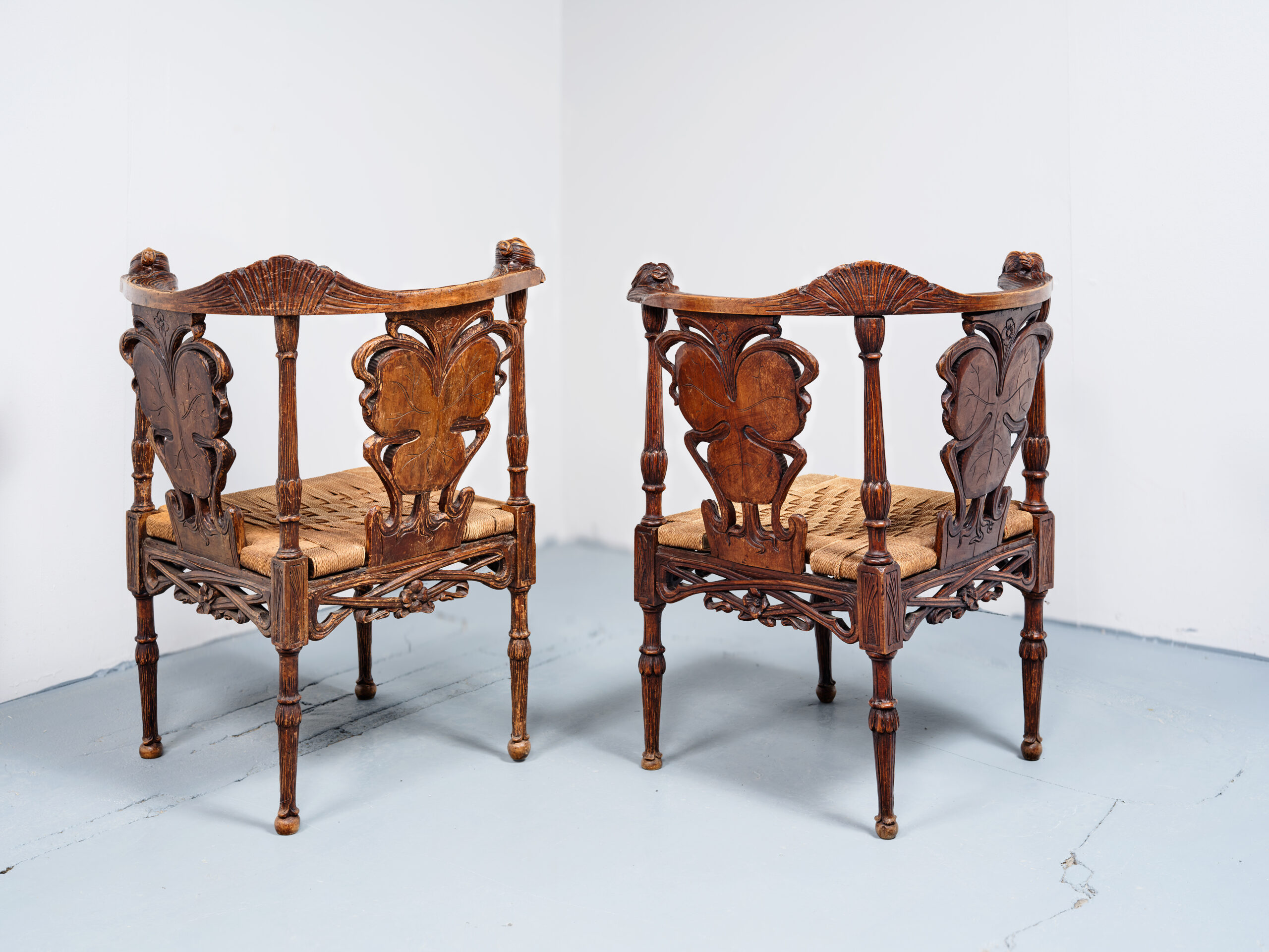 Paire de fauteuils en bois naturel mouluré et sculpté,
