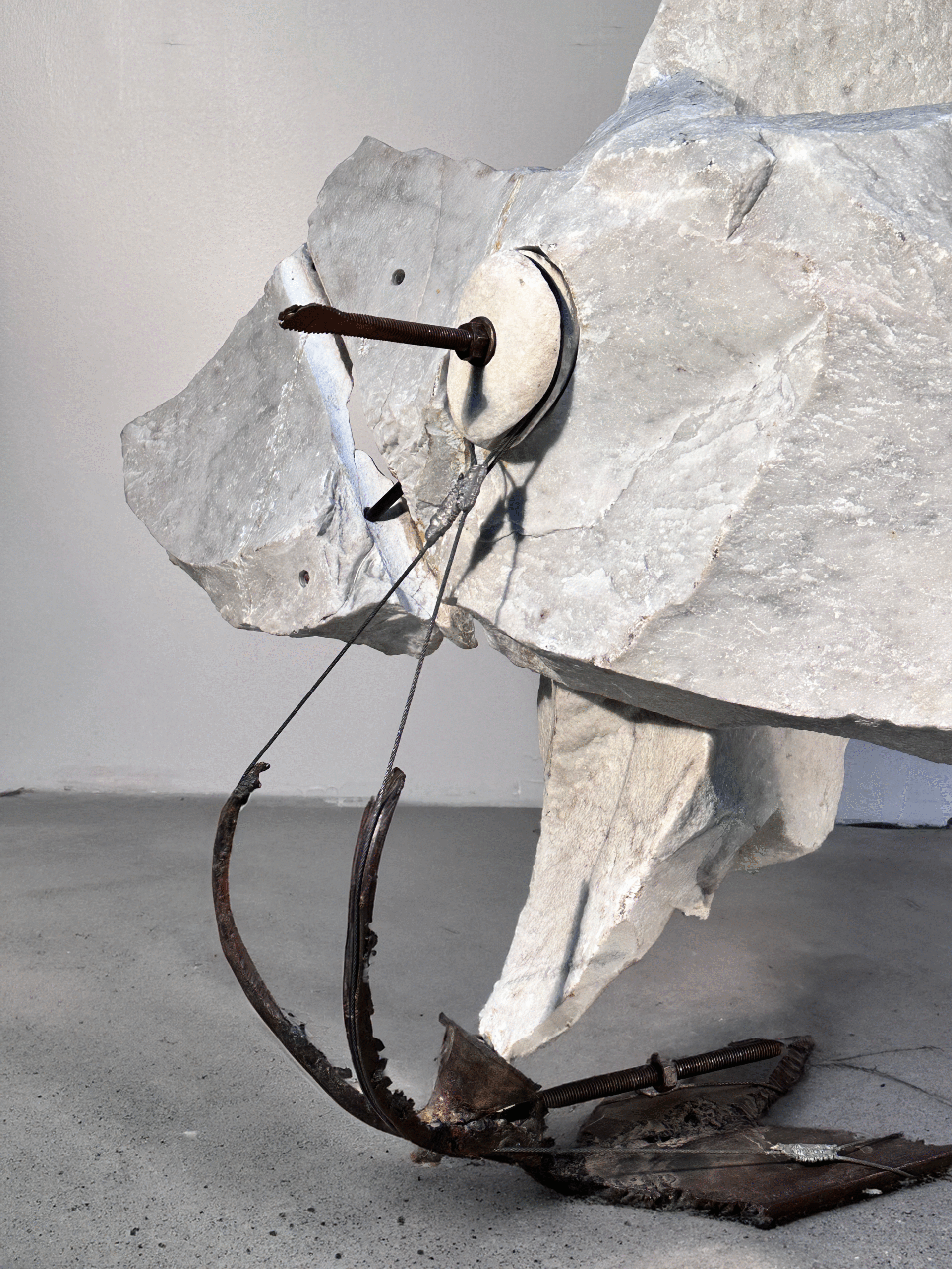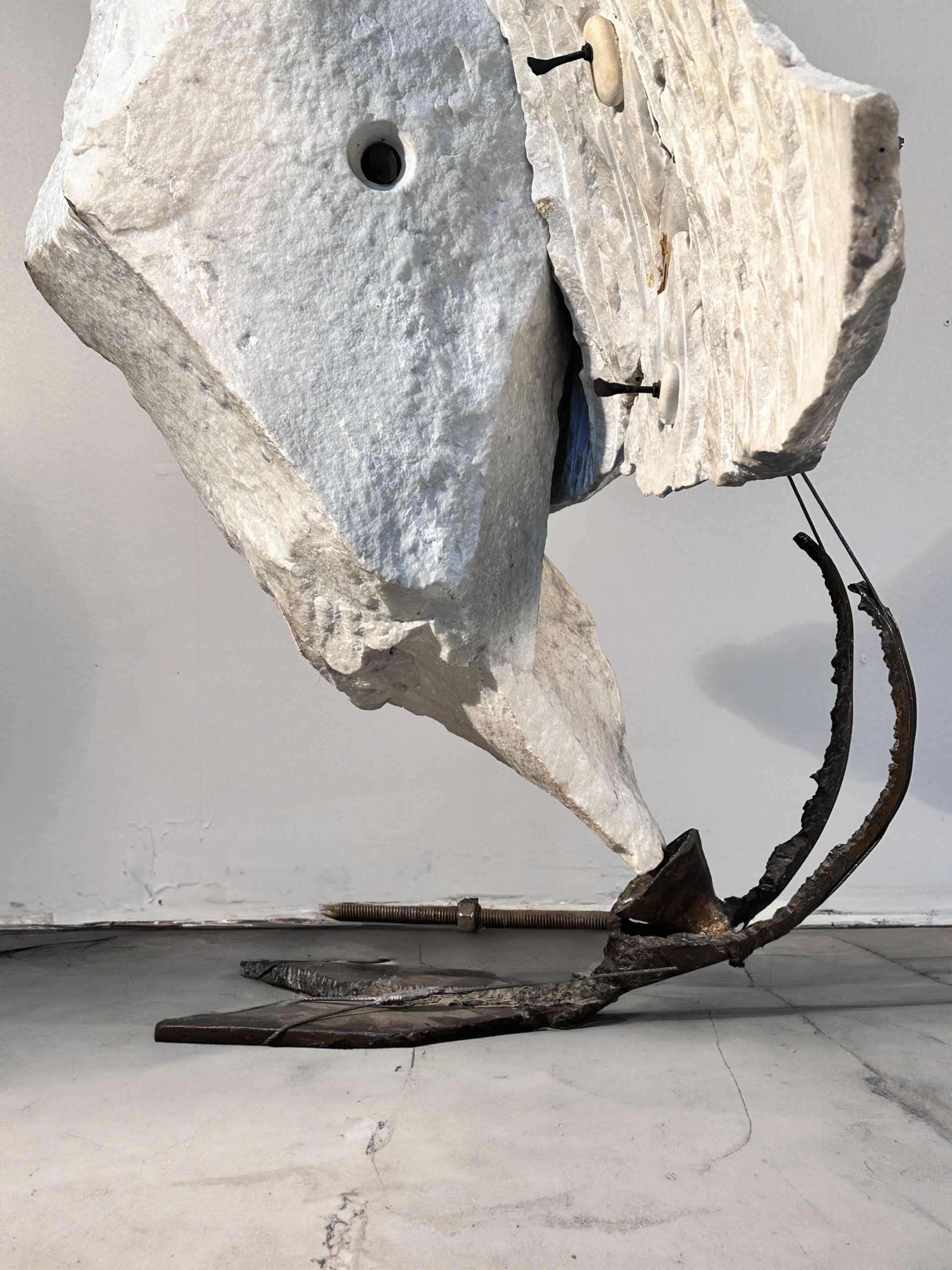 Sculpteur français, François Weil développe depuis la fin des années 1980 une œuvre centrée sur le dialogue entre matériaux minéraux et structures métalliques. Ses sculptures, souvent réalisées en marbre associé à l’acier, explorent l’équilibre, la tension et la dynamique interne des formes. Son travail s’inscrit dans une démarche contemporaine où la matière brute devient vecteur de force expressive et de rigueur plastique.