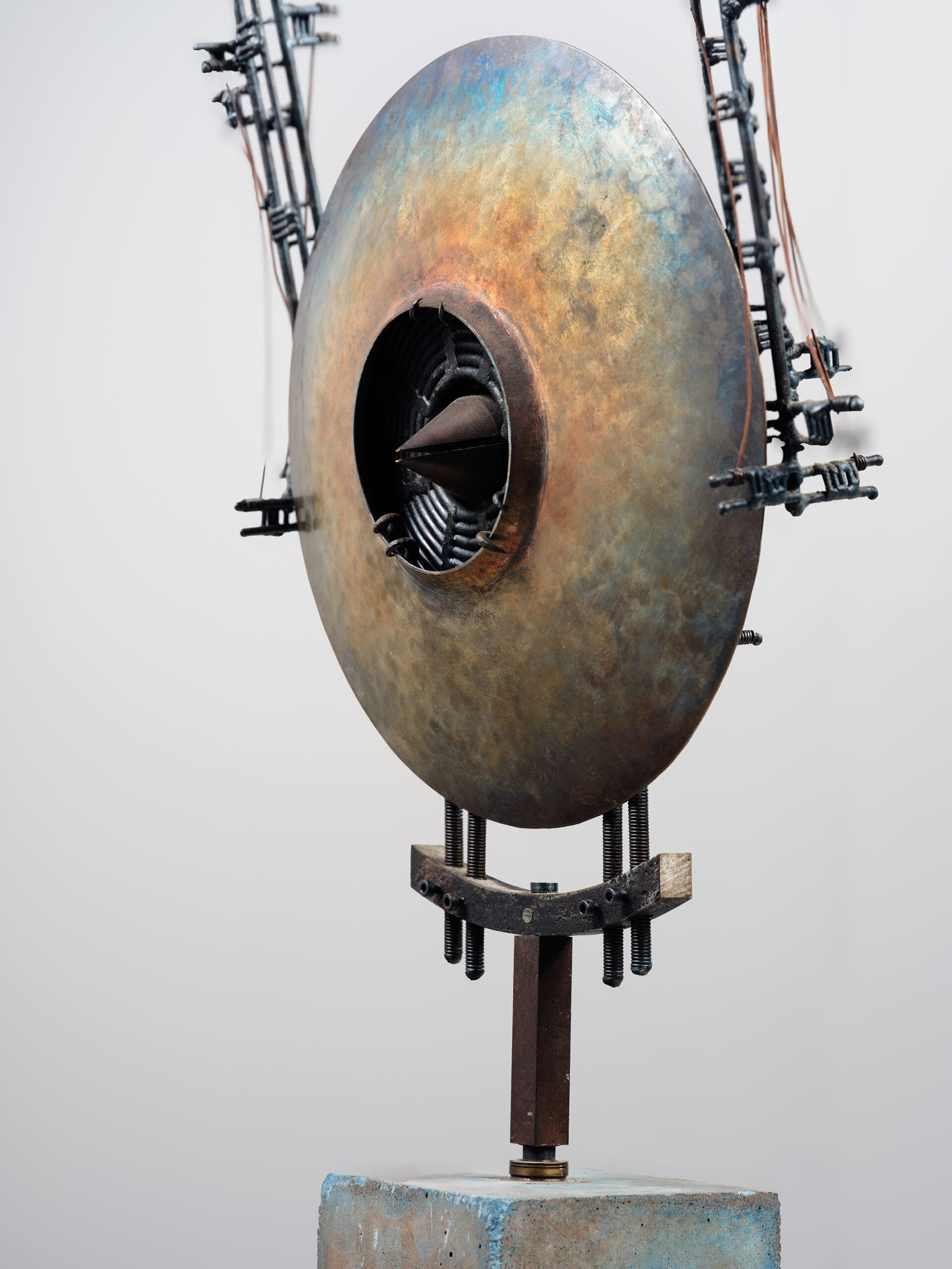 Artiste contemporain français, Frédéric Barnley développe depuis les années 1980 un travail sculptural associant métal, volumes géométriques et éléments symboliques. Ses œuvres explorent la relation entre forme, matière et présence spatiale, souvent à travers des compositions où la structure métallique devient un motif expressif.