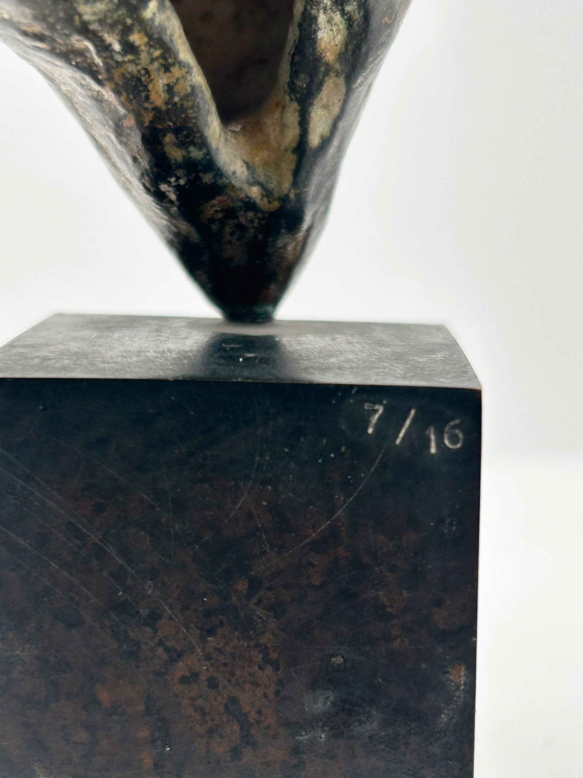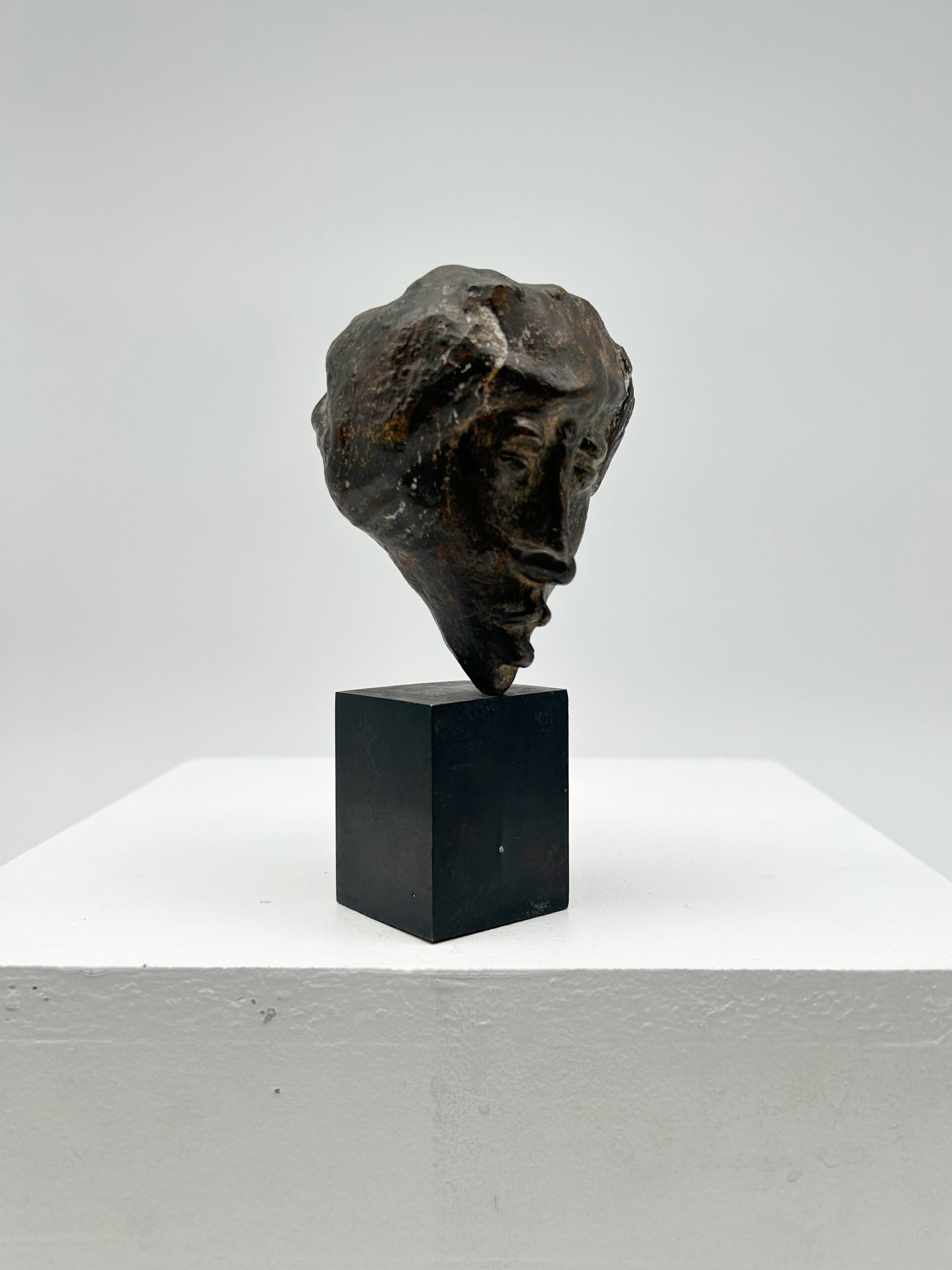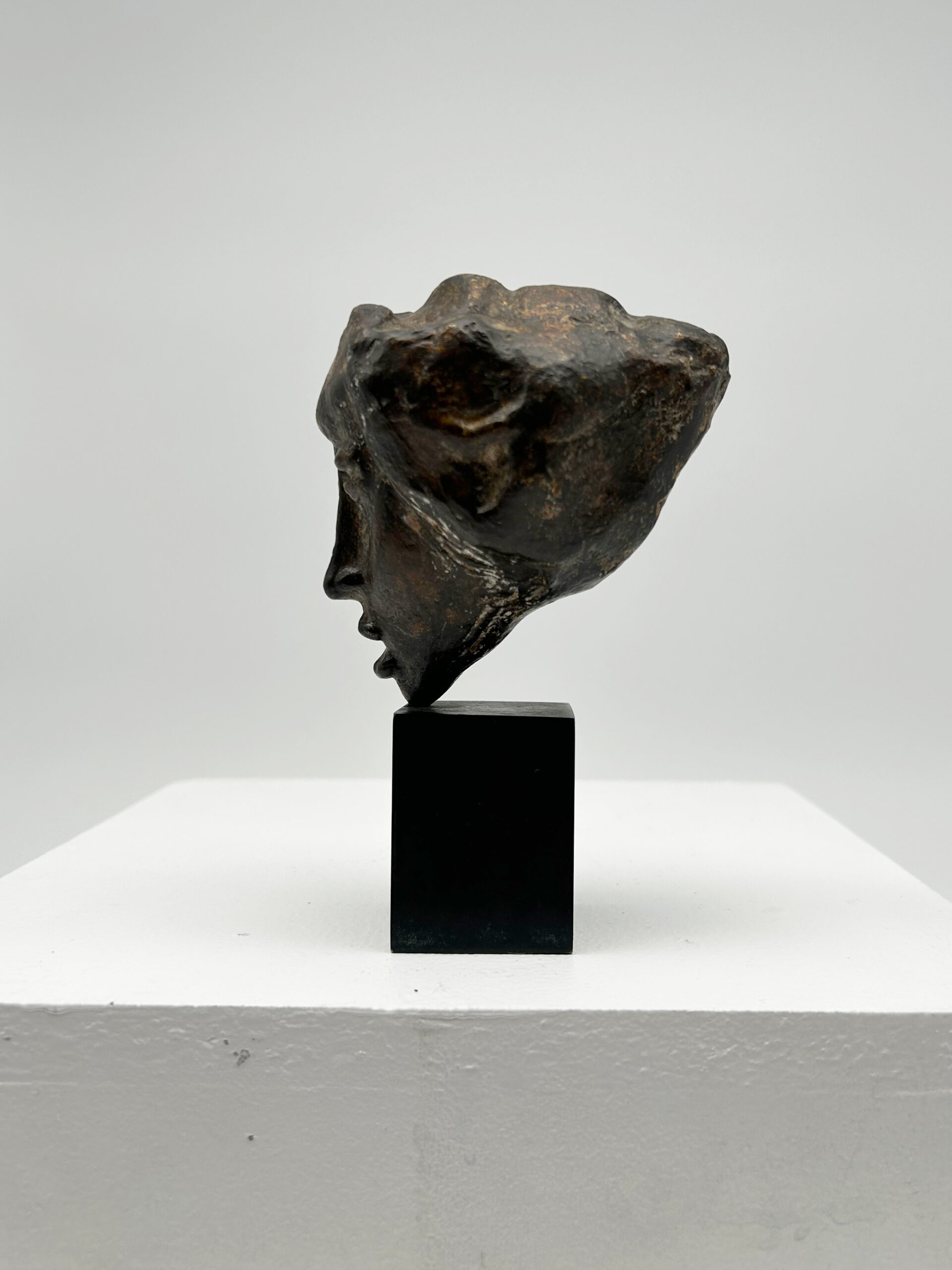 Sculpture en bronze patiné représentant un masque stylisé inspiré du village mythique de Pentedattilo, en Calabre. L’œuvre s’inscrit dans la série des Masques de Calabre, où Busato revisite les visages archaïques et rituels de cette région empreinte de traditions méditerranéennes. La patine sombre et le modelé tendu donnent à la pièce une présence intense, presque totémique.