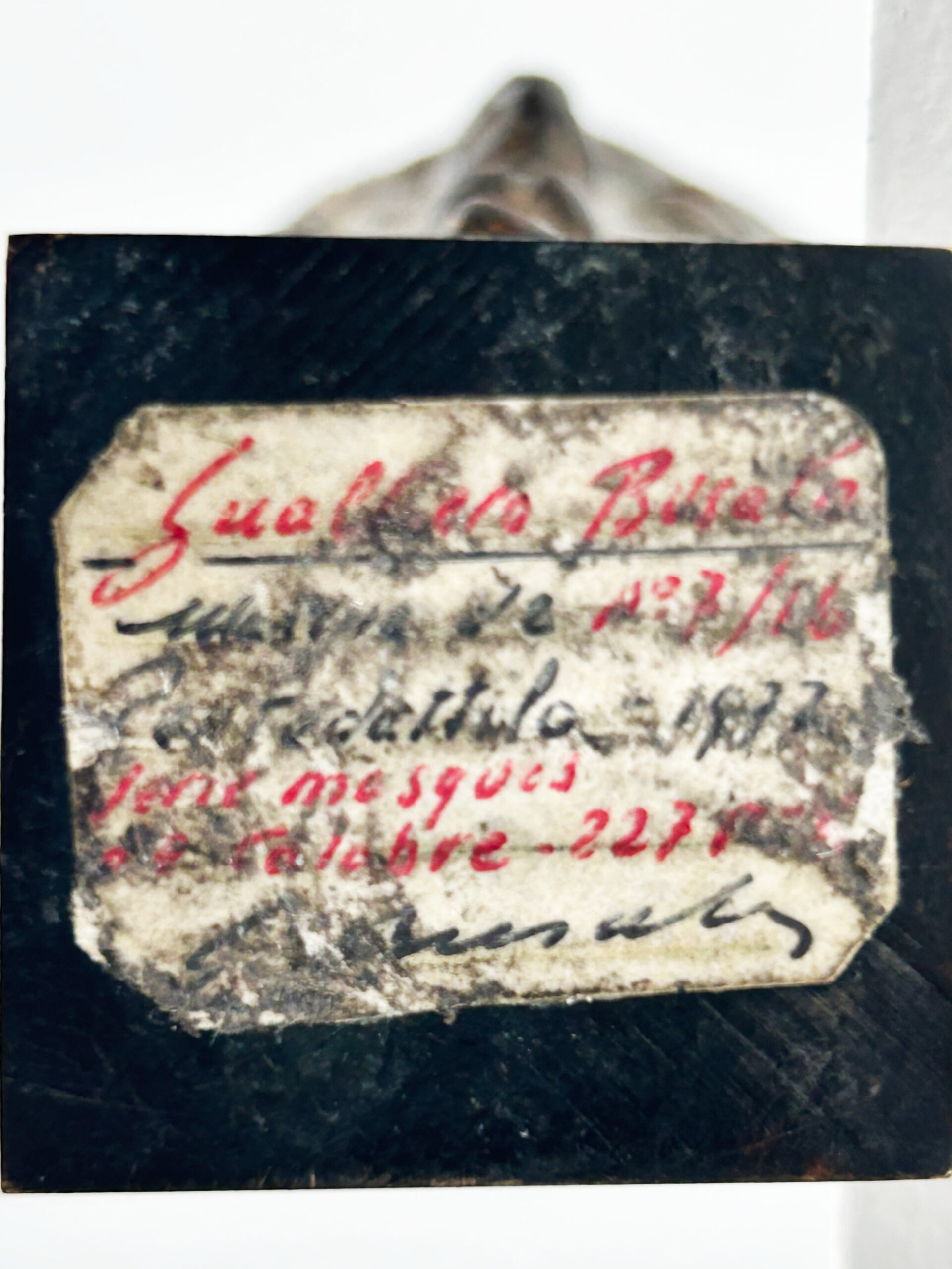 Né à Venise en 1941, Gualtiero Busato fait partie des sculpteurs italiens qui renouvellent la tradition du bronze après la Seconde Guerre mondiale. Formé aux techniques classiques de fonderie et de modelage, il développe un langage plastique centré sur la stylisation, l’expression symbolique et les racines culturelles du bassin méditerranéen. Son œuvre, souvent éditée en séries limitées, explore les masques, les totems et les figures anthropomorphes au caractère introspectif.