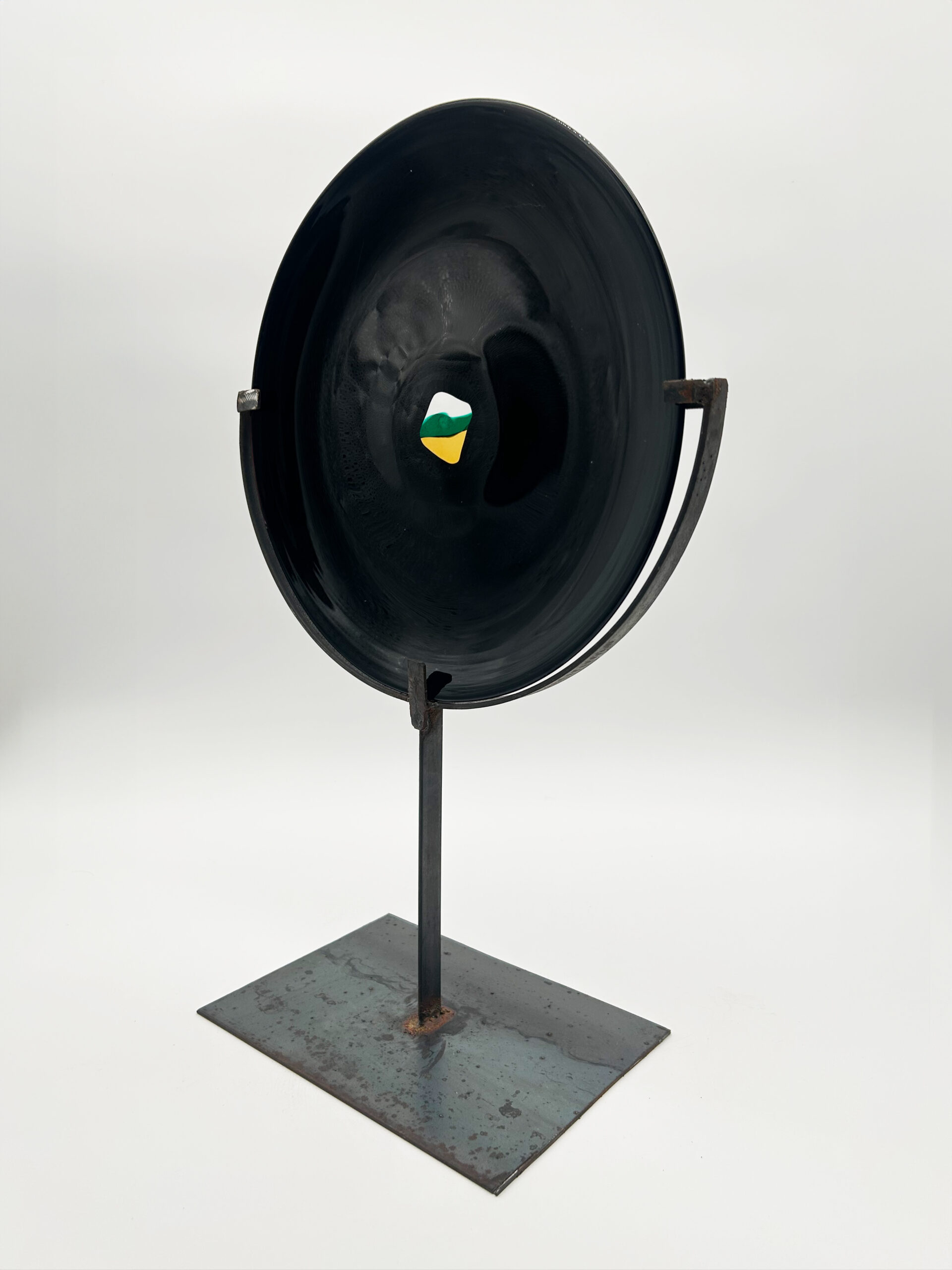 Plat en verre noir profond, décoré d’une murrine centrale polychrome