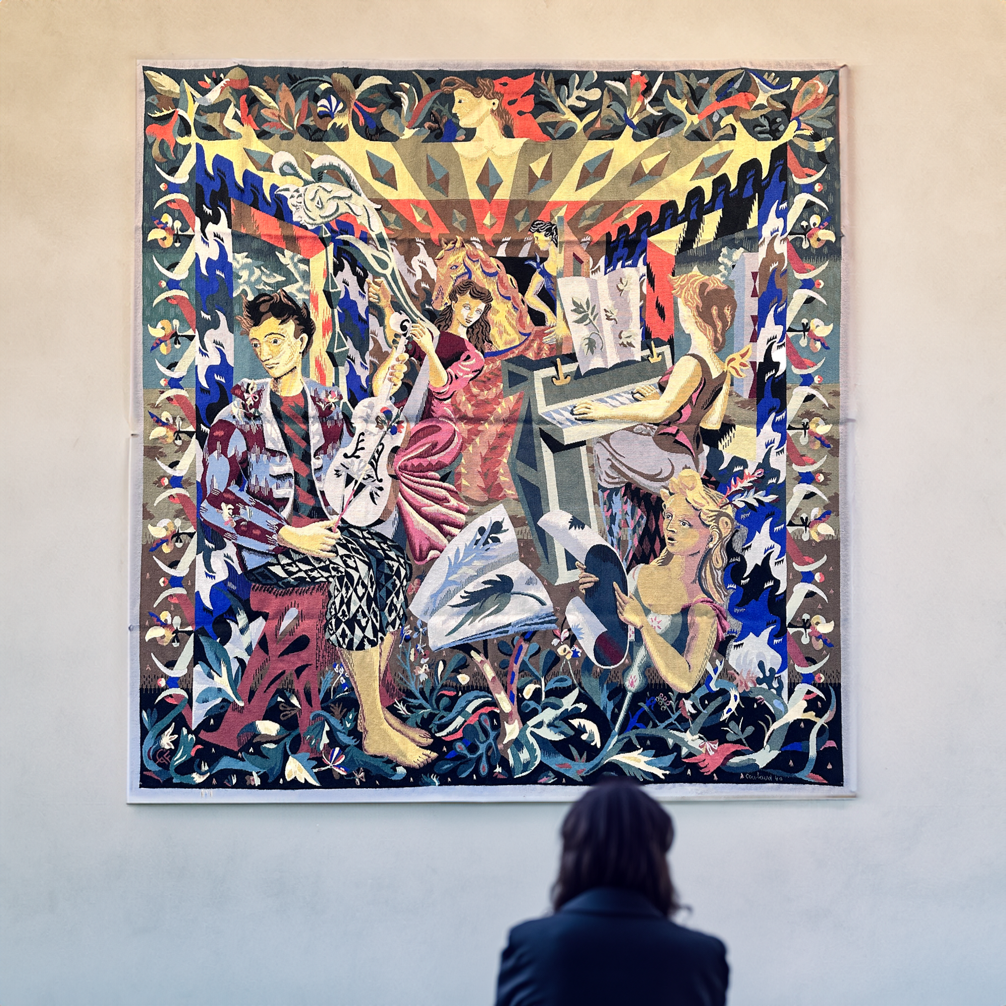 Peintre, graveur et décorateur, Lucien Coutaud travaille également pour le théâtre aux côtés de Charles Dullin et Jean-Louis Barrault, réalisant décors et costumes. Sa rencontre avec Marie Cuttoli en 1933 marque un tournant décisif : elle l’introduit à la tapisserie en lui commandant des cartons, notamment pour des sièges.
