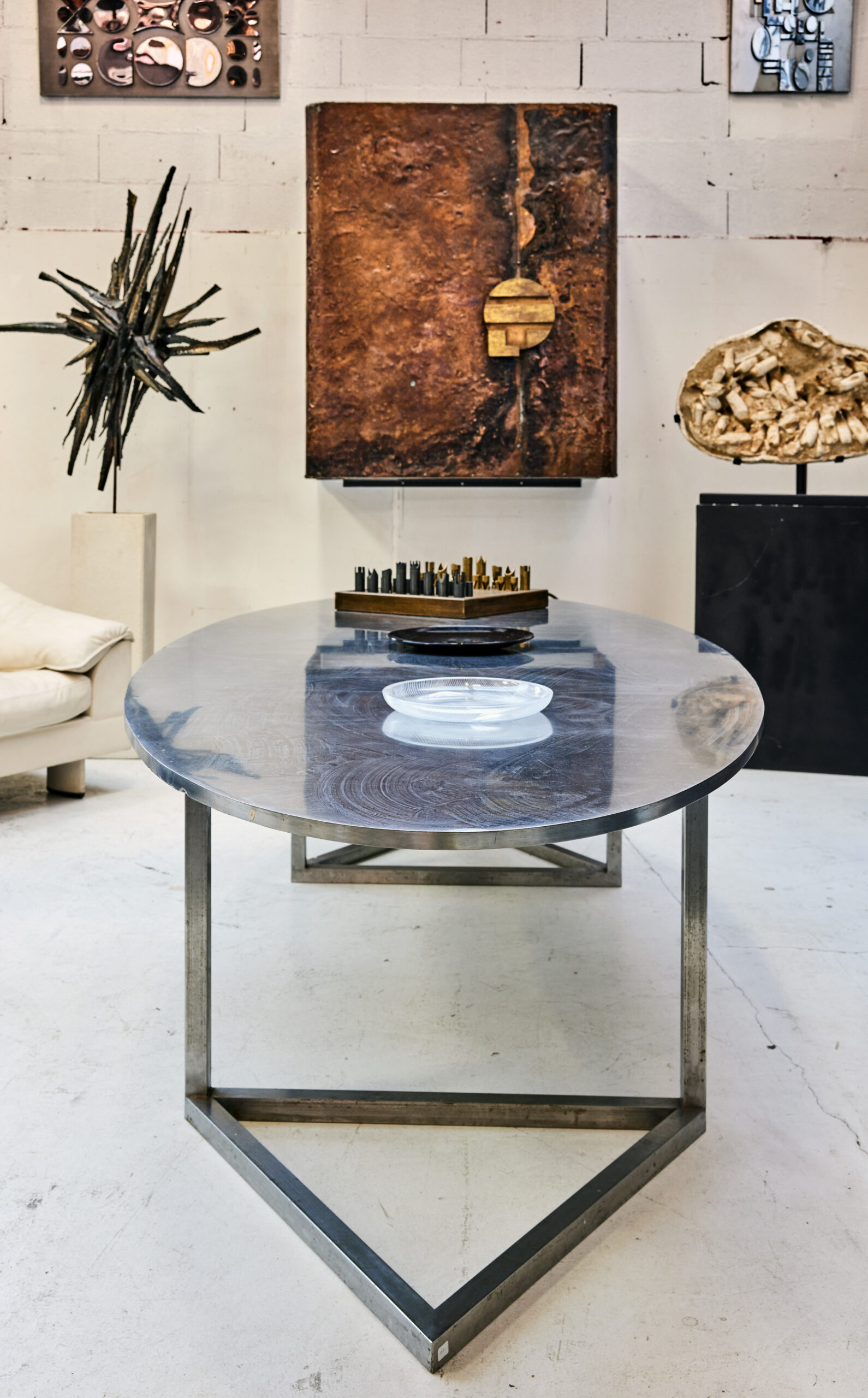 Décoratrice et designer active dans la seconde moitié du XXᵉ siècle, Françoise See collabore avec l’enseigne Maison et Jardin, connue pour ses créations modernistes aux lignes épurées et aux matériaux contemporains. Son travail se caractérise par l’emploi du métal, des formes géométriques et d’un design fonctionnel soulignant la recherche d’élégance discrète propre aux intérieurs des années 1960–1970.