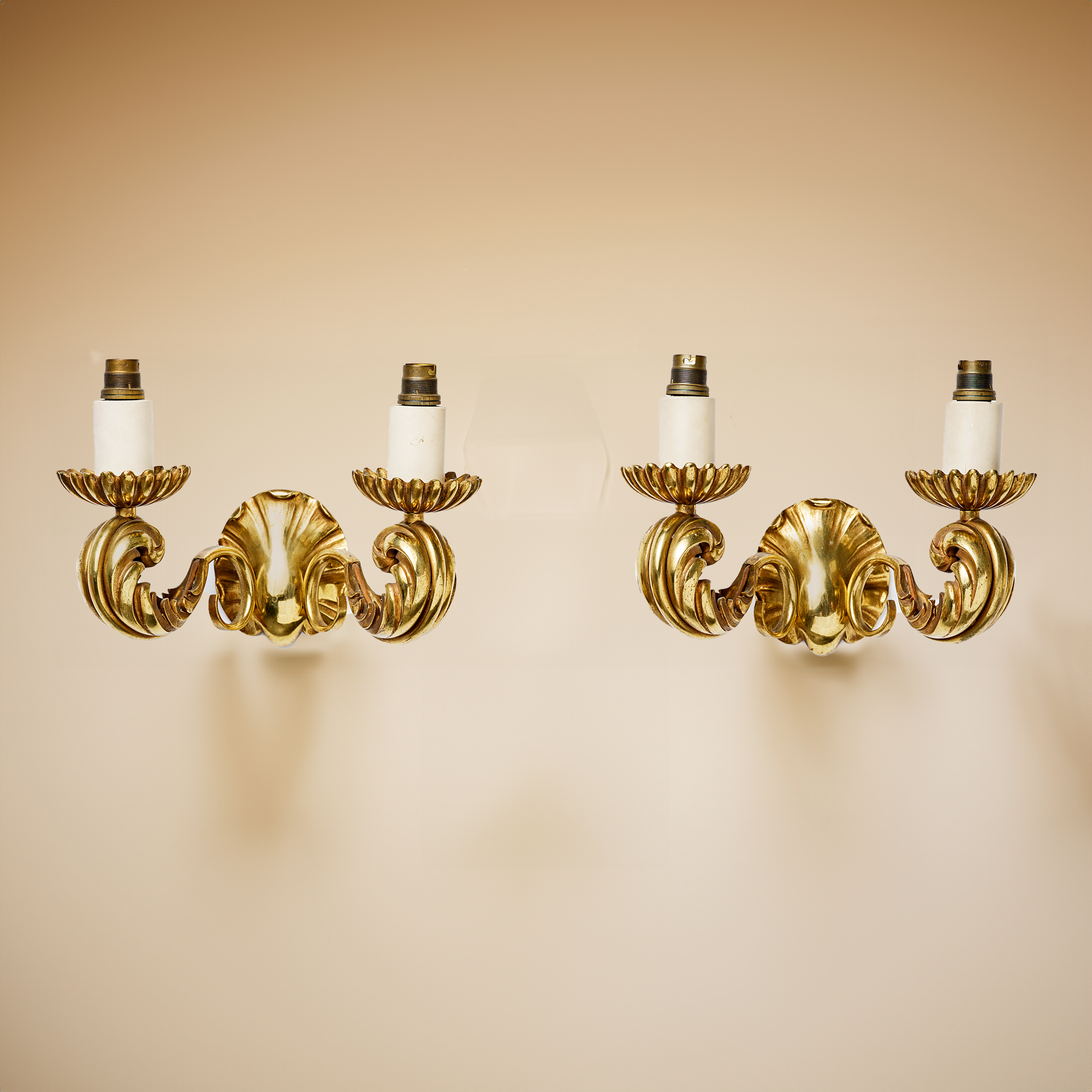 Paire d’appliques en bronze doré à motif végétal, deux bras de lumière