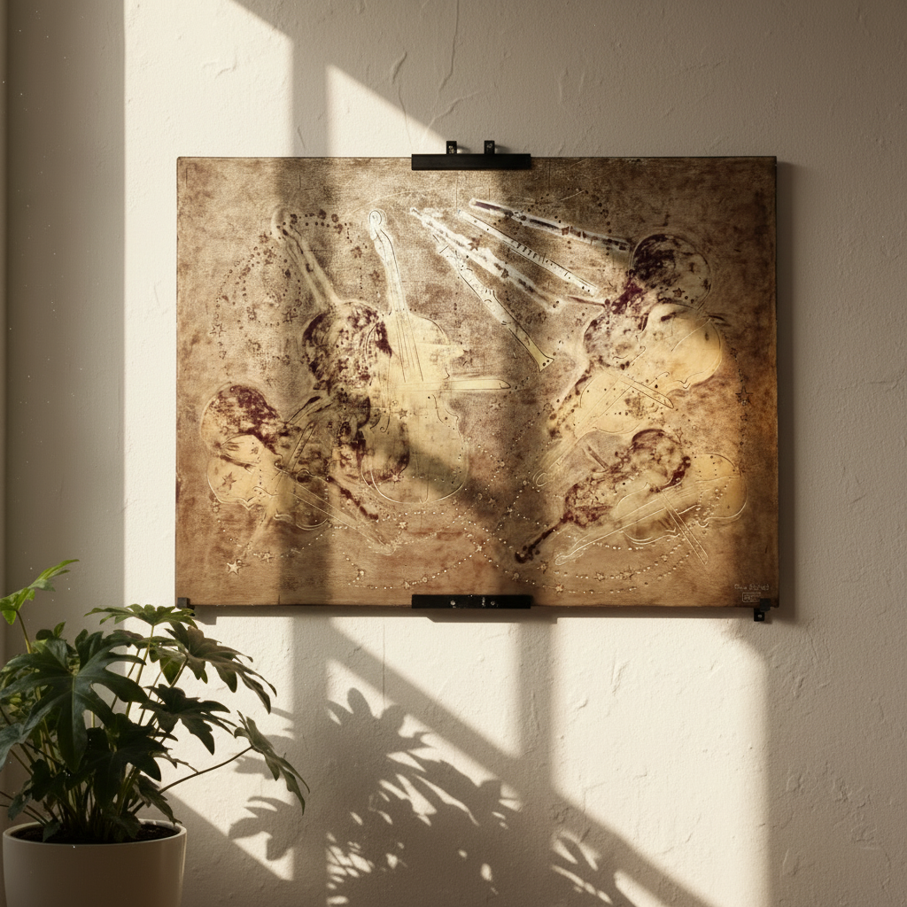 Cette œuvre est à rapprocher des réalisations de Pierre Bobot pour le Salon de musique des premières classes du paquebot France.