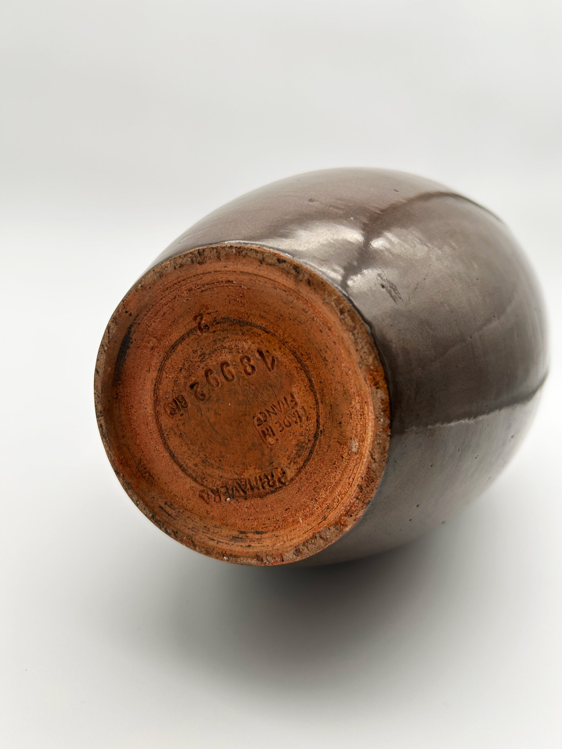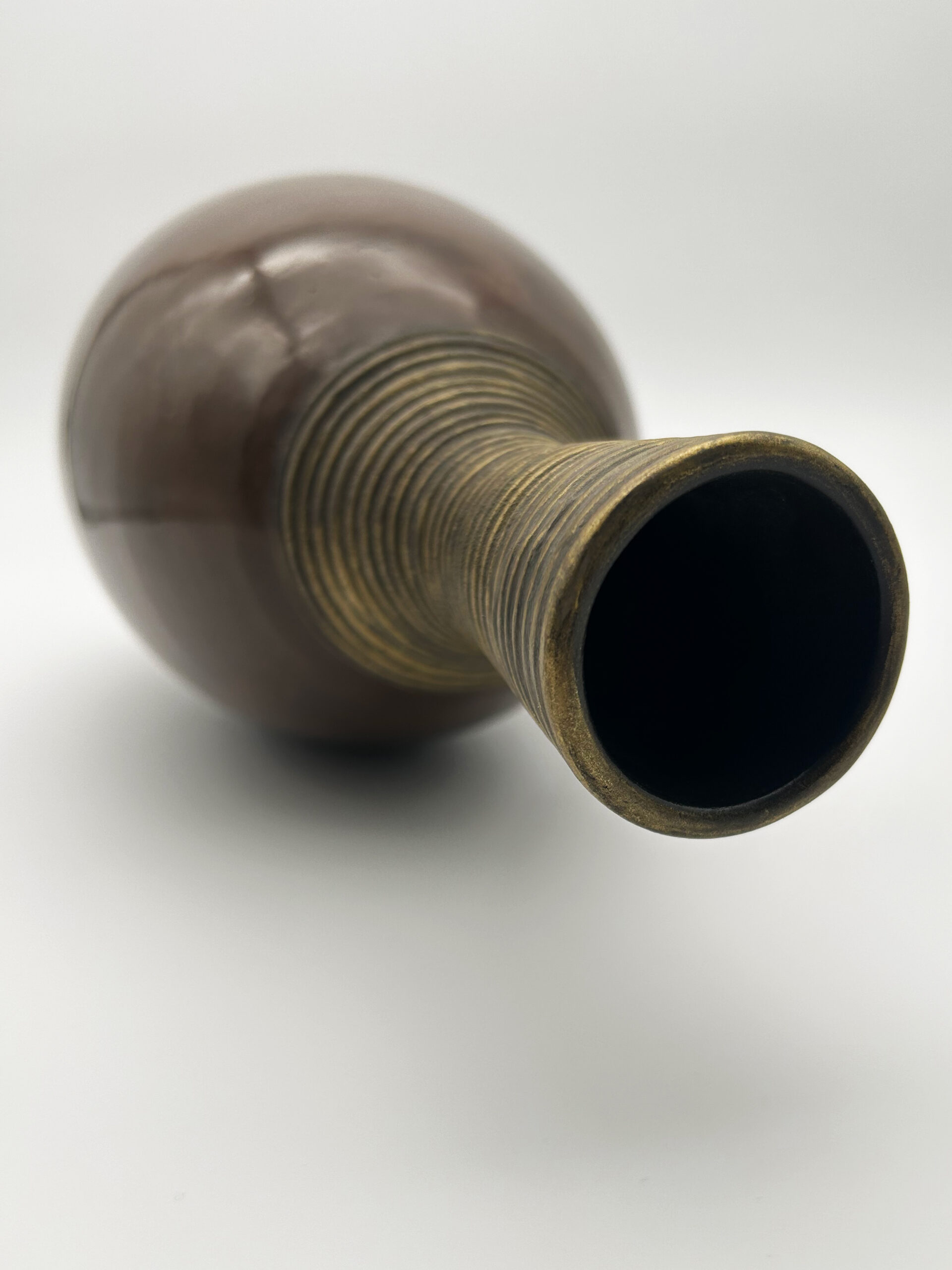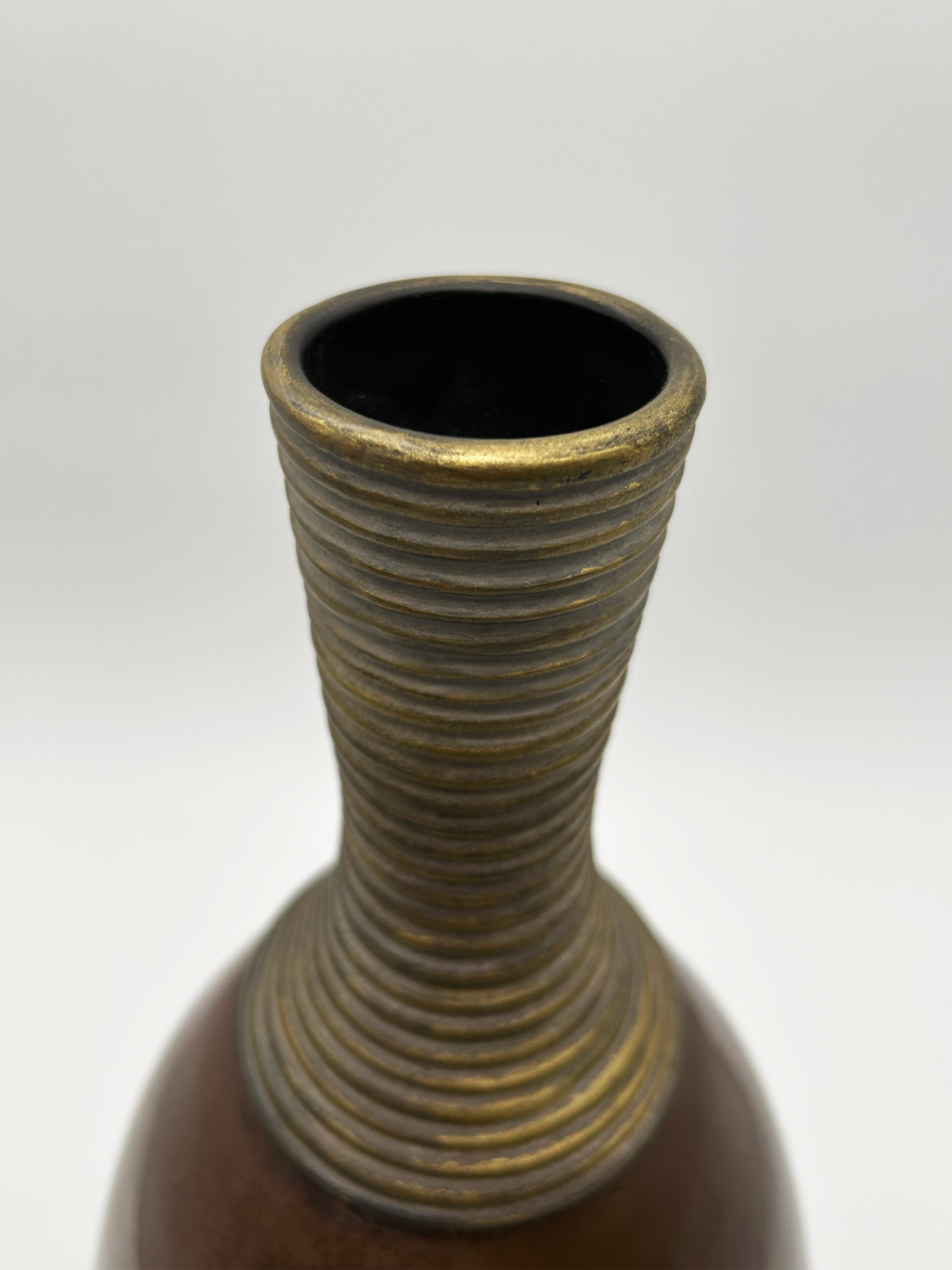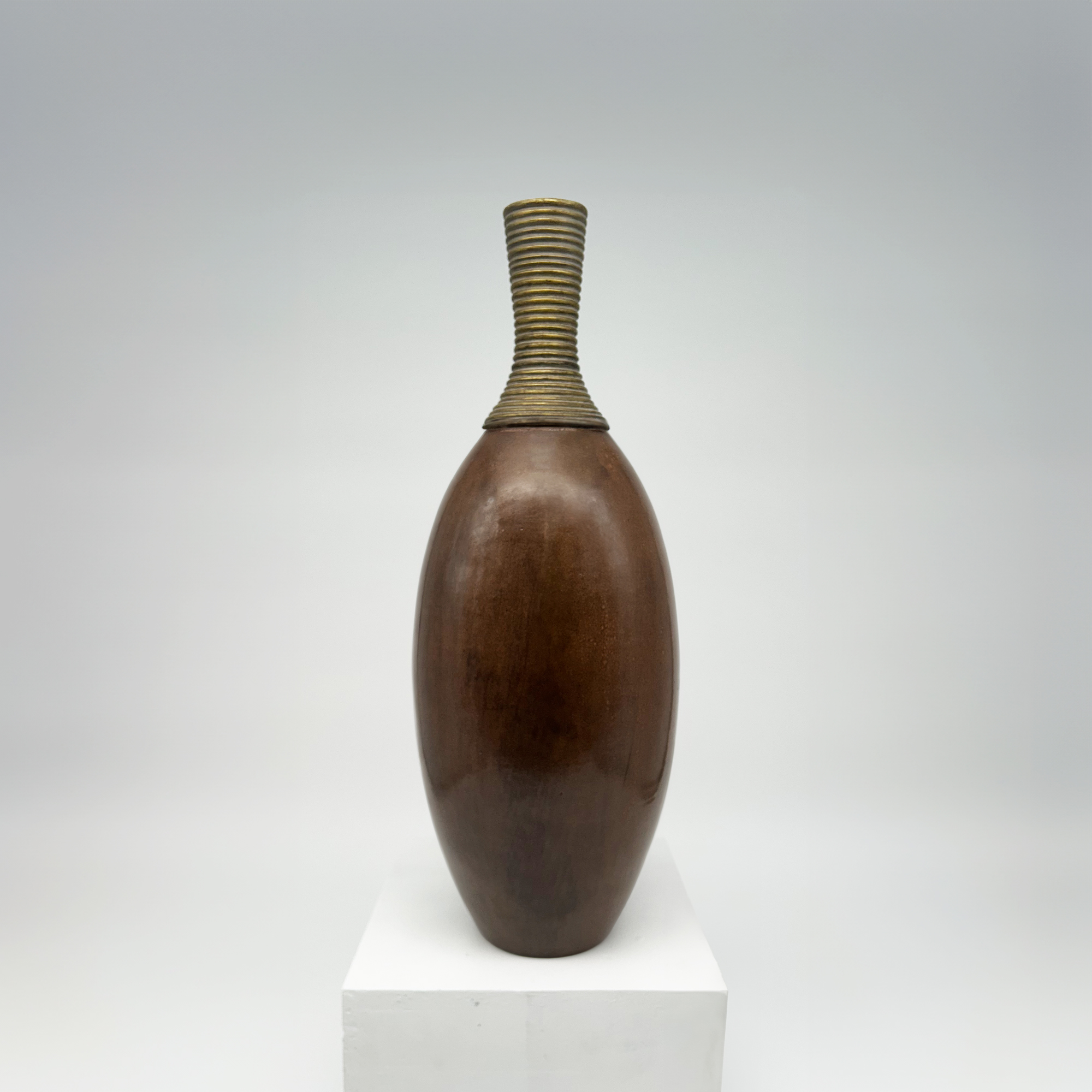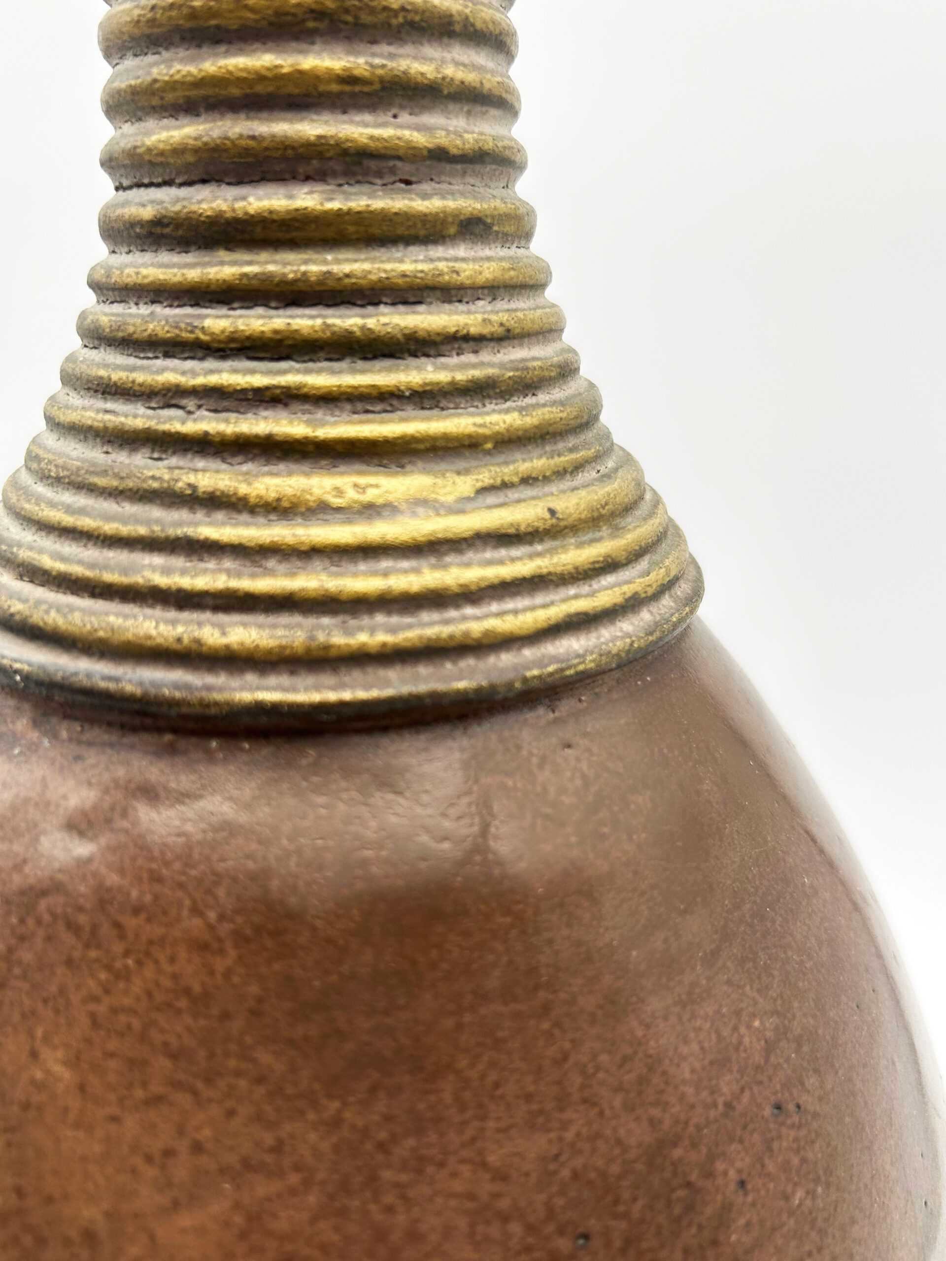 Vase en céramique à décor africaniste, patine brune, orné de dorures au collier