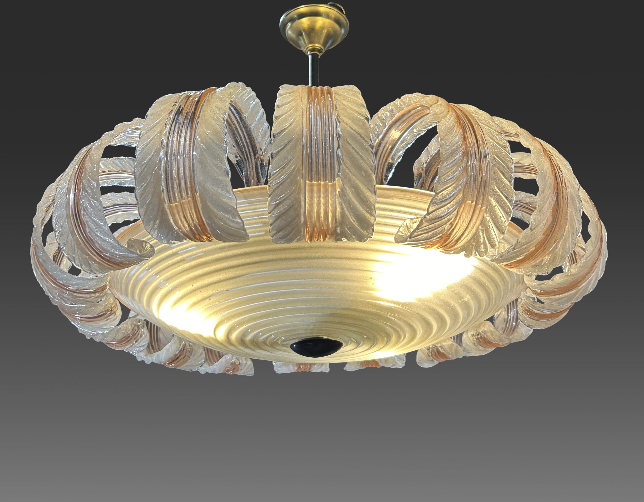 Rare suspension florale en verre soufflé « lattimo » et « pulegoso »
