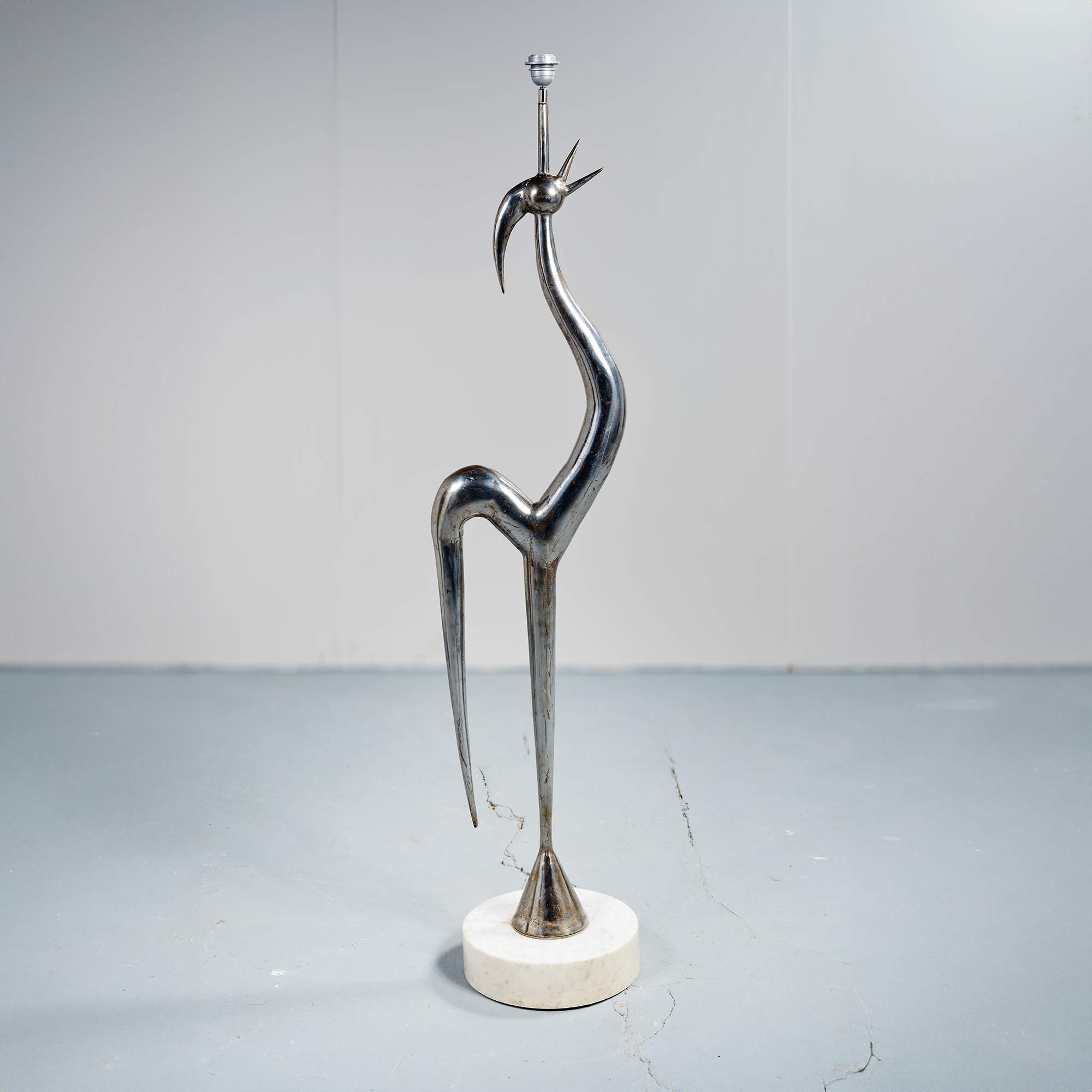 Sculpteur français actif à partir des années 1950, René Broissand développe un travail centré sur le métal soudé, explorant des formes stylisées et des silhouettes épurées. Ses œuvres, souvent verticales et élancées, témoignent d’une recherche d’équilibre entre abstraction et figuration. Ses pièces uniques reflètent une maîtrise du geste et une sensibilité sculpturale caractéristique de la création française de la seconde moitié du XXᵉ siècle.